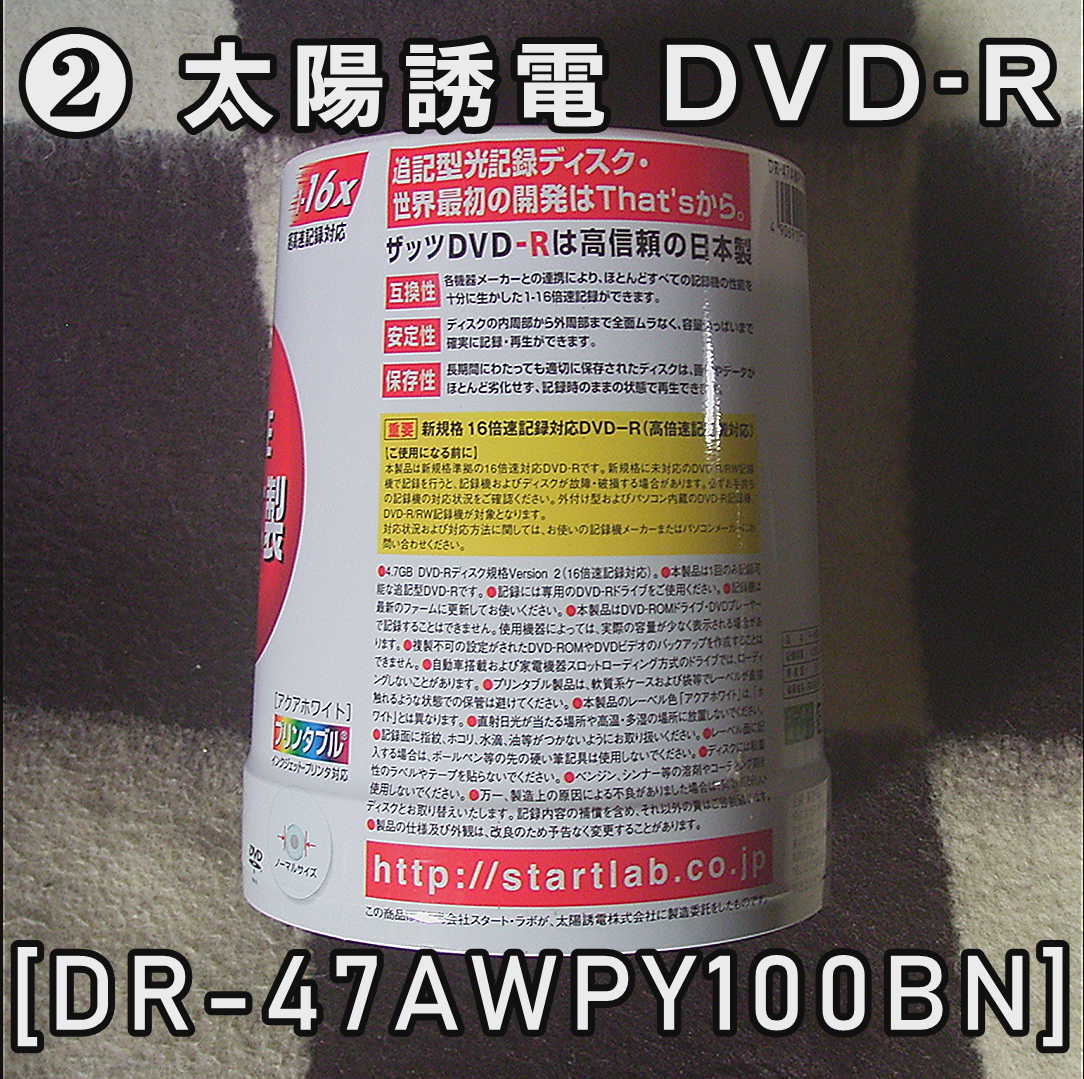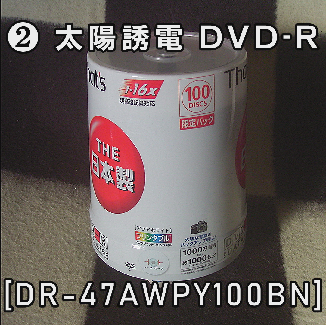 ②太陽誘電製DVD-R[DR-47AWPY100BN]100枚